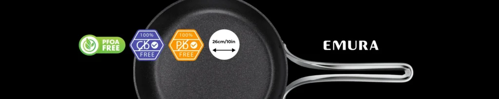 3️⃣ Cool-Touch Handle: The Emura handle stays cool, providing a comfortable, safe grip no matter how hot the pan gets.